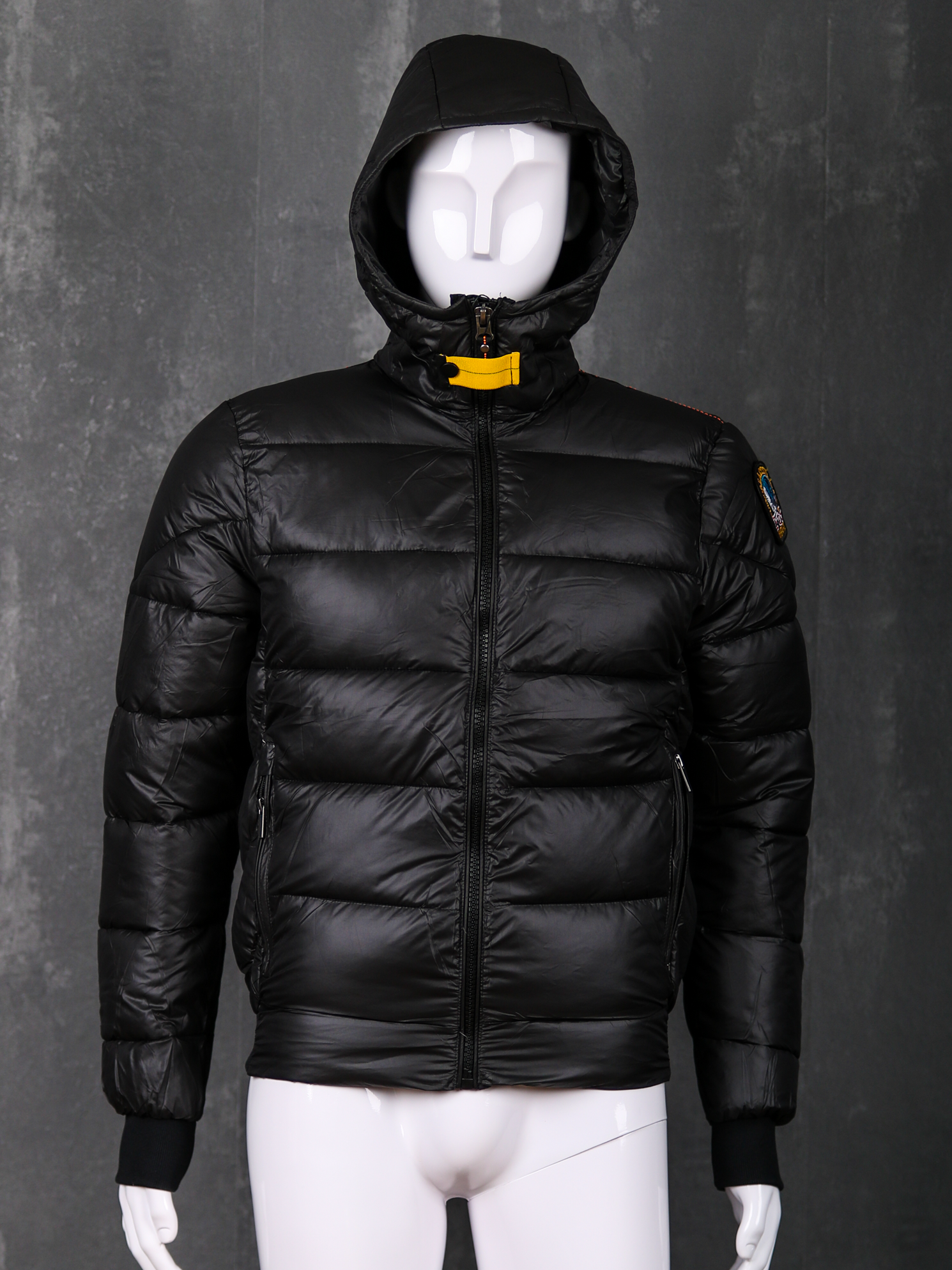 Besonderheiten: Stepp-Design, gelbes Kapuzendetail, seitliche Eingriffstaschen, durchgehender Reißverschluss