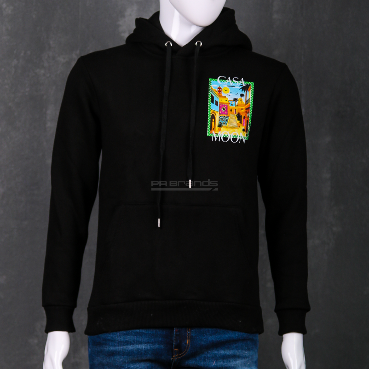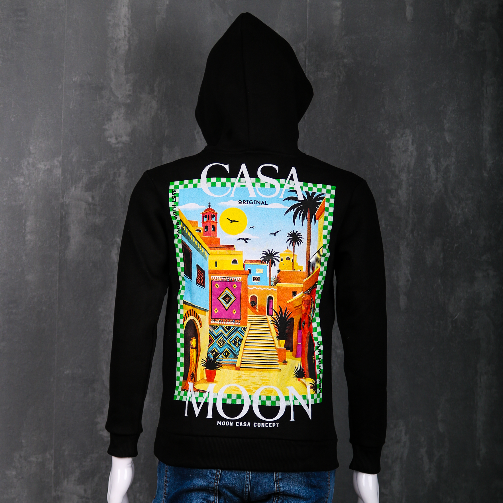Der Hoodie Casa Moon von Icon 2 vereint klassischen Komfort mit farbenfrohem Statement-Print. Gefertigt aus 100% Baumwolle, überzeugt er durch angenehme Haptik und langlebige Qualität. Das markante Casa Moon-Motiv auf Brust und Rücken verleiht dem Hoodie einen urbanen Charakter mit orientalischem Flair. Praktische Details wie Kapuze mit Kordelzug und Kängurutasche machen ihn zum perfekten Begleiter für den Alltag. Erhältlich in Schwarz und Grau, lässt er sich vielseitig kombinieren.
