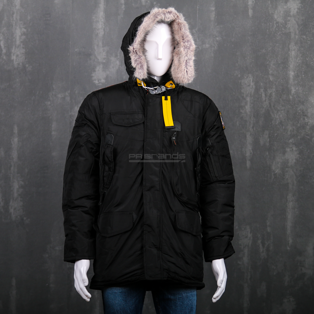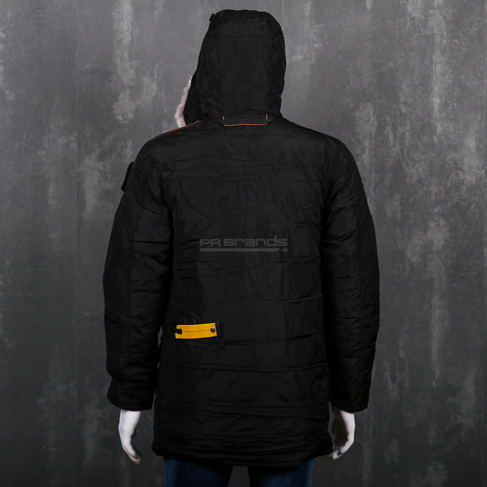 Besonderheiten: Abnehmbarer Fellkragen, markante gelbe Details, funktionale Taschen, robuste Verarbeitung