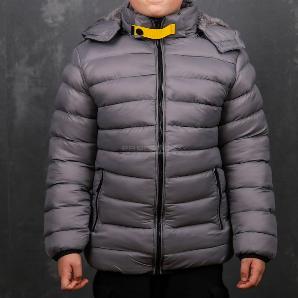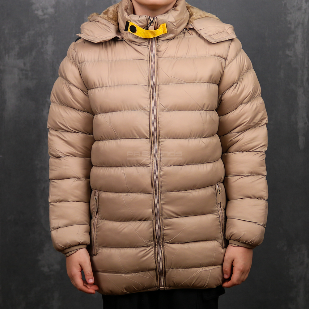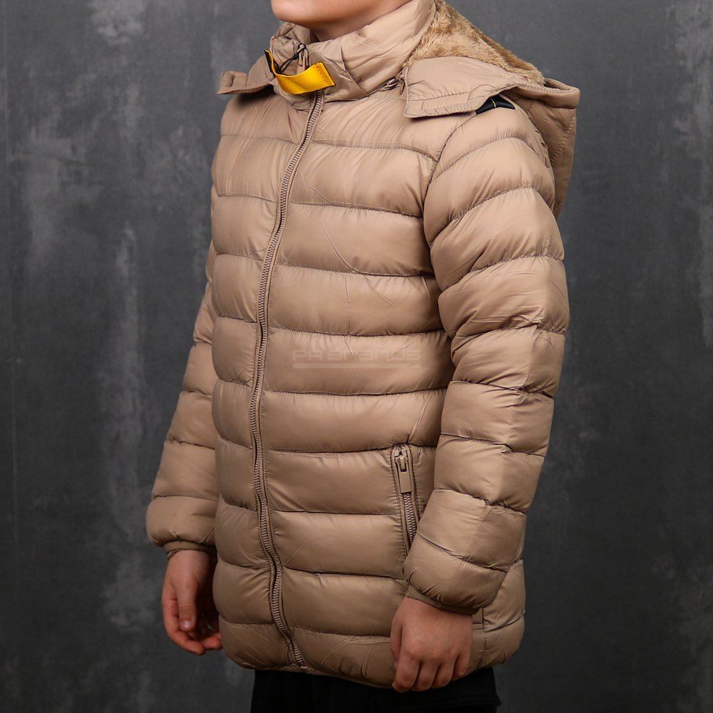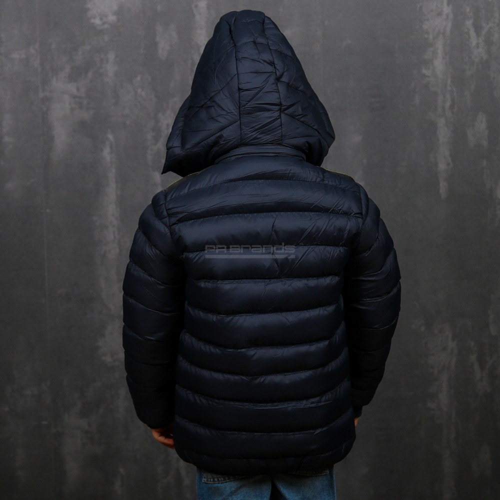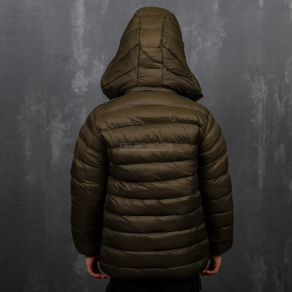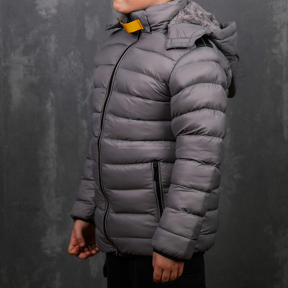 Besonderheiten: Abnehmbare Kapuze mit Kunstfell, gesteppte Oberfläche, kontrastierende Reißverschlüsse, elastische Ärmelbündchen