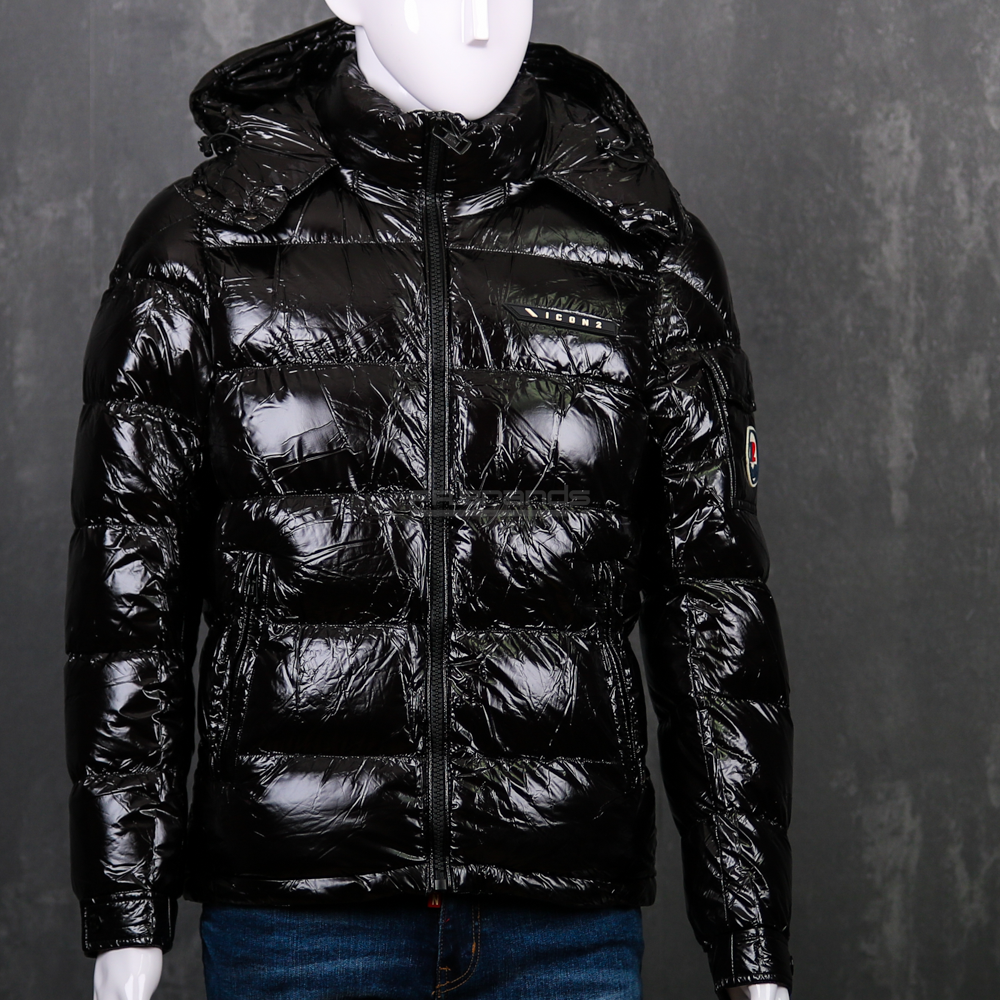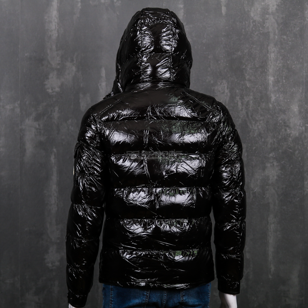 Besonderheiten: Glänzende Oberfläche, abnehmbare Kapuze, Logo-Badge am Arm, Reißverschlusstaschen, warme Wattierung
