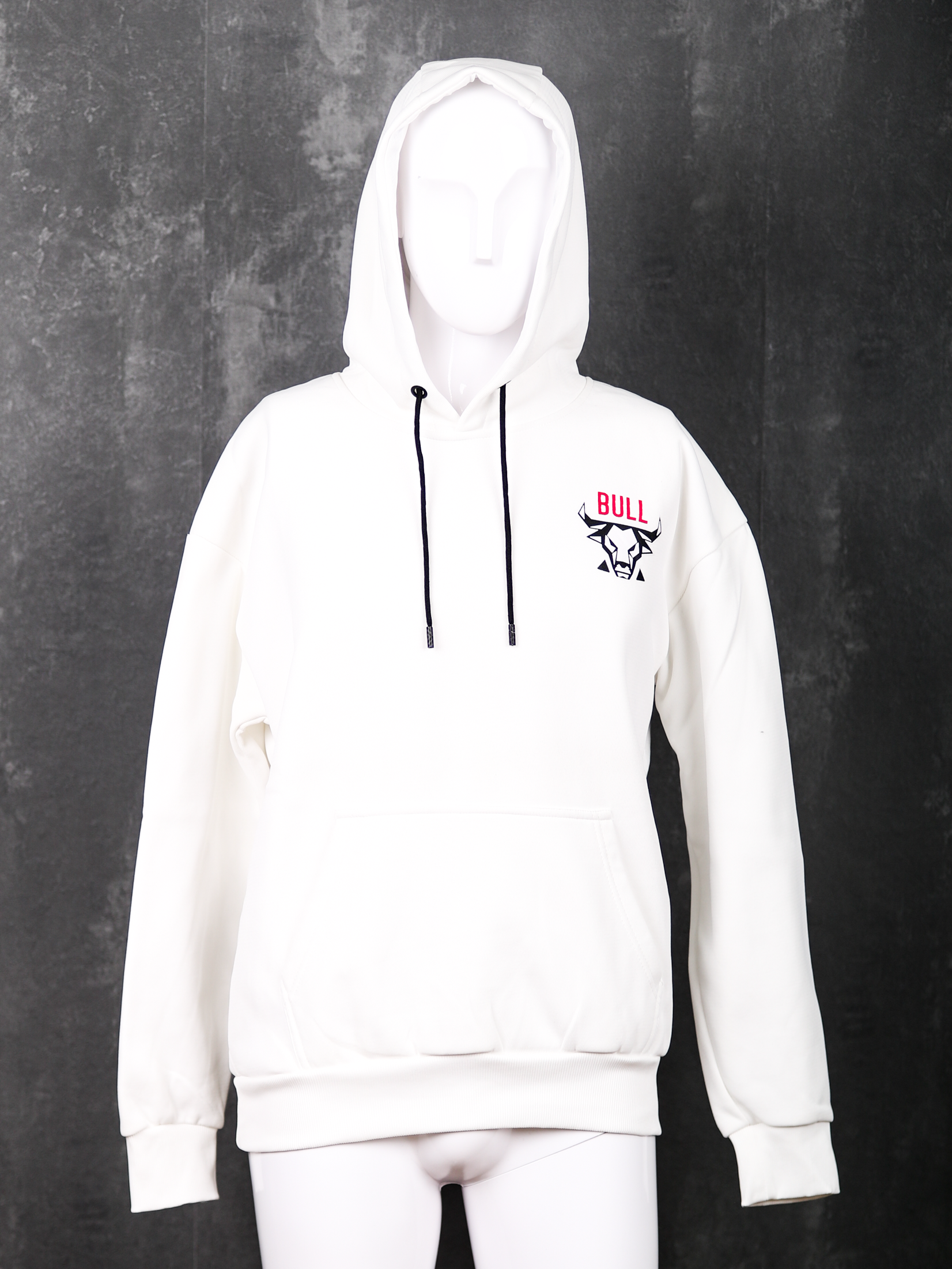 Setze ein starkes Statement mit dem KUMA Bull Statement Hoodie! Der auffällige „BULL“-Schriftzug auf der Brust und das große Bullenkopf-Motiv auf dem Rücken sorgen für echte Urban-Vibes und ziehen garantiert Blicke auf sich. Hochwertiger 100 % Polyester sorgt für optimalen Tragekomfort und macht den Hoodie pflegeleicht und langlebig. Praktische Details wie Kapuze mit Kordelzug und eine klassische Kängurutasche runden den Look ab – perfekt für Alltag, Freizeit oder Gym. Erhältlich in Weiß und Beige sowie in den Größen S bis XXL – ein echtes Must-have für alle, die Mode mit Power suchen!