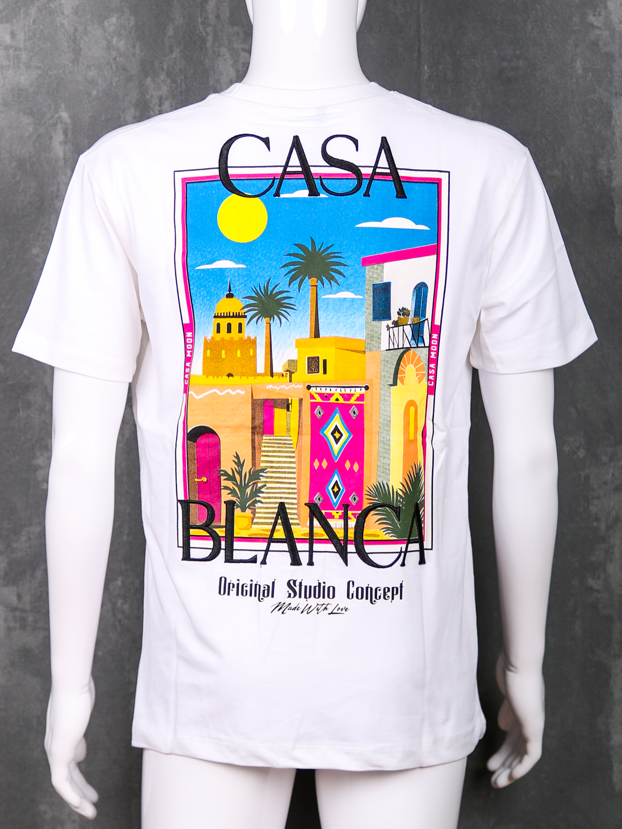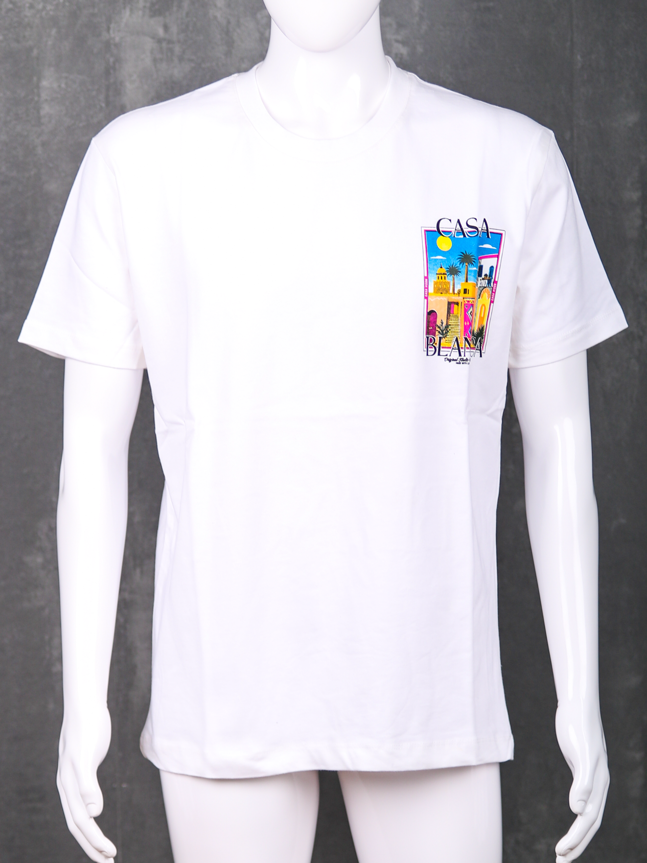 Bring mediterranes Flair in deinen Kleiderschrank mit dem T-Shirt Casa Blanca von Icon2! Das farbenfrohe Retro-Design zeigt eine lebendige Stadtszene, die Sonne, Palmen und Architektur perfekt in Szene setzt. Vorne findest du einen kleinen Frontprint auf Brusthöhe, während der großflächige Backprint das Shirt zum echten Statement-Piece macht. Dank der 100% Baumwolle bietet es dir ein angenehmes Tragegefühl – egal ob du es im Sommer solo trägst oder unter einer leichten Jacke kombinierst.